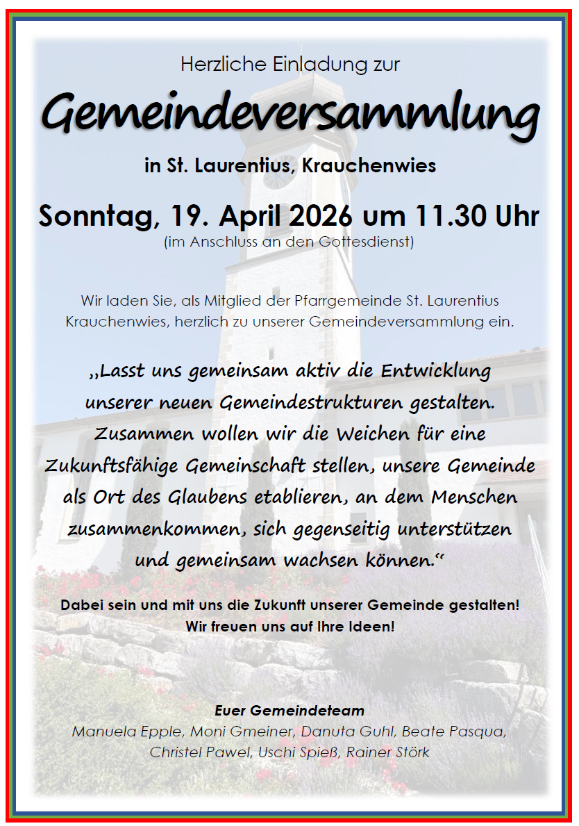 Ein herzliches Dankeschön allen Engagierten für ihre Bereitschaft zum Mitwirken und dem Pfarreirat einen guten Start, viel Freude, Erfolg und Gottes Segen für sein Wirken in der neuen Pfarrei!